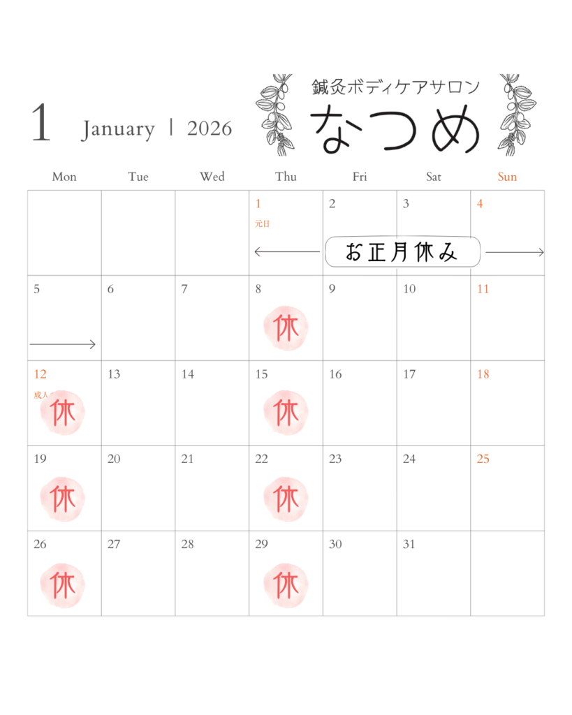 今年は月曜の休業日と続きになる為、少し長めのお正月休みをいただきます。